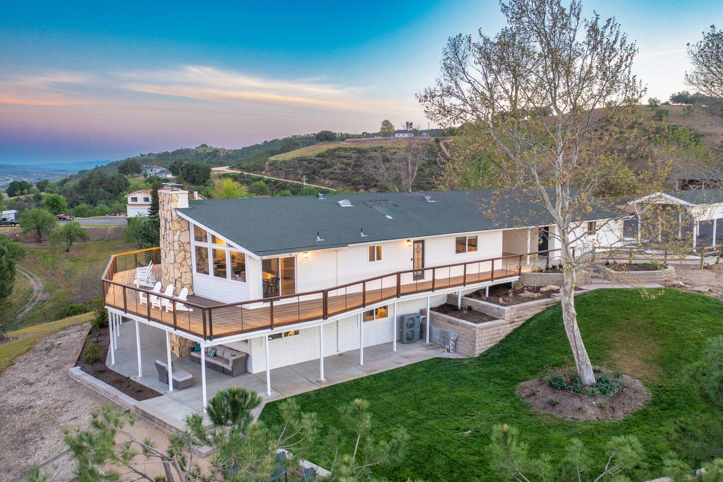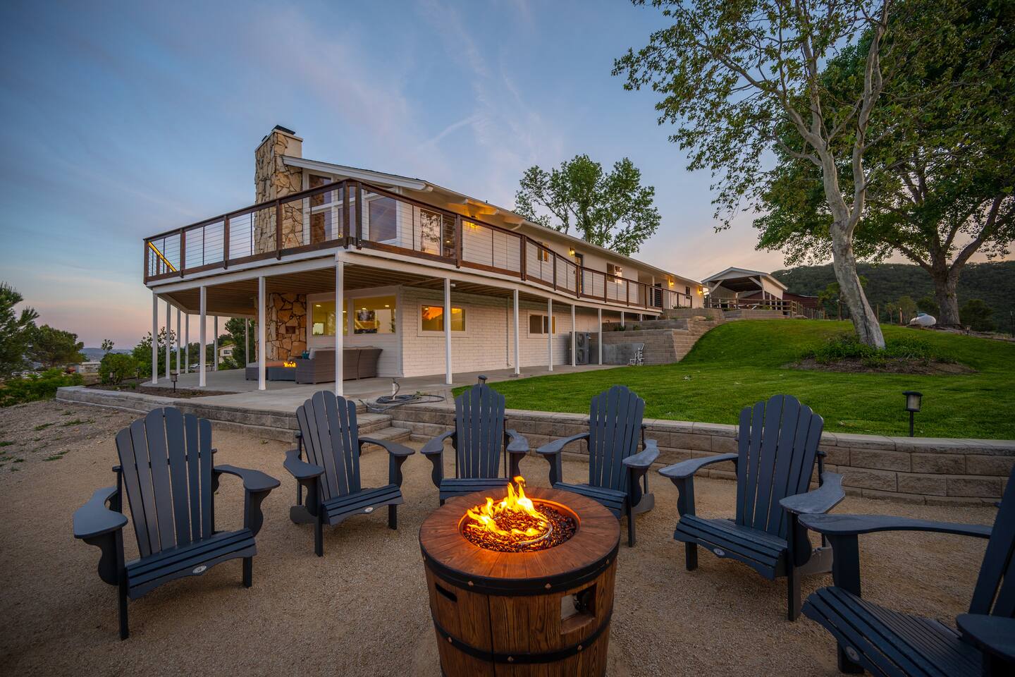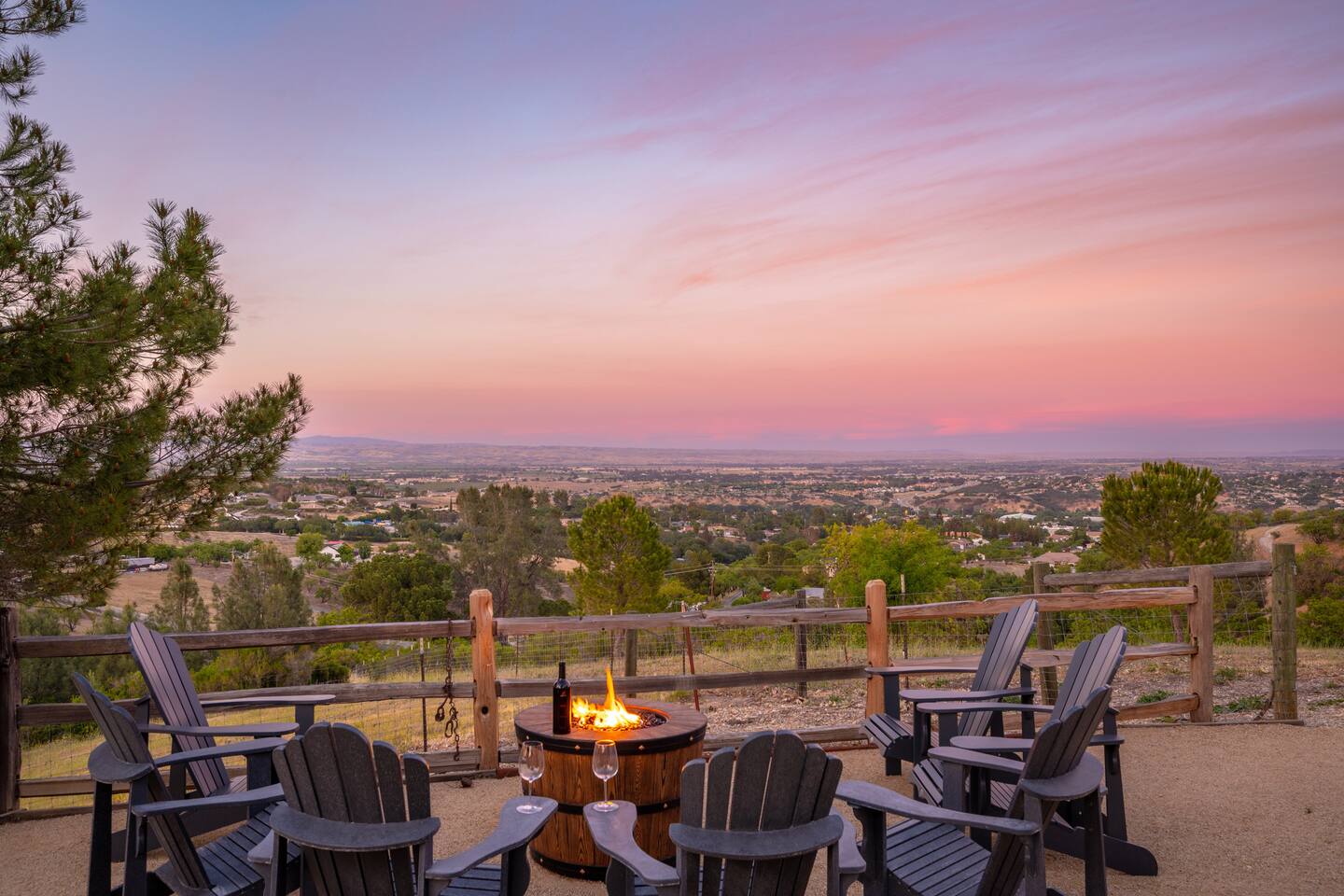 Centrally located among the best wineries in Paso Robles, you’re on top of the world at this 7-acre luxury 4BR/3BA ranch home. Soak in sweeping 180-degree views of vineyard vistas and twinkling city lights, all while being just minutes from downtown Paso Robles. Beautifully remodeled, this stunning vacation home features a chef’s kitchen, granite countertops, vaulted ceilings, rock fireplaces, a family room, desks in every room, high-speed internet, and a 40 Amp electric vehicle charger.