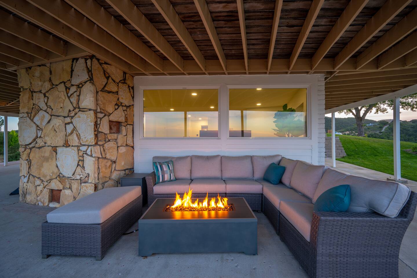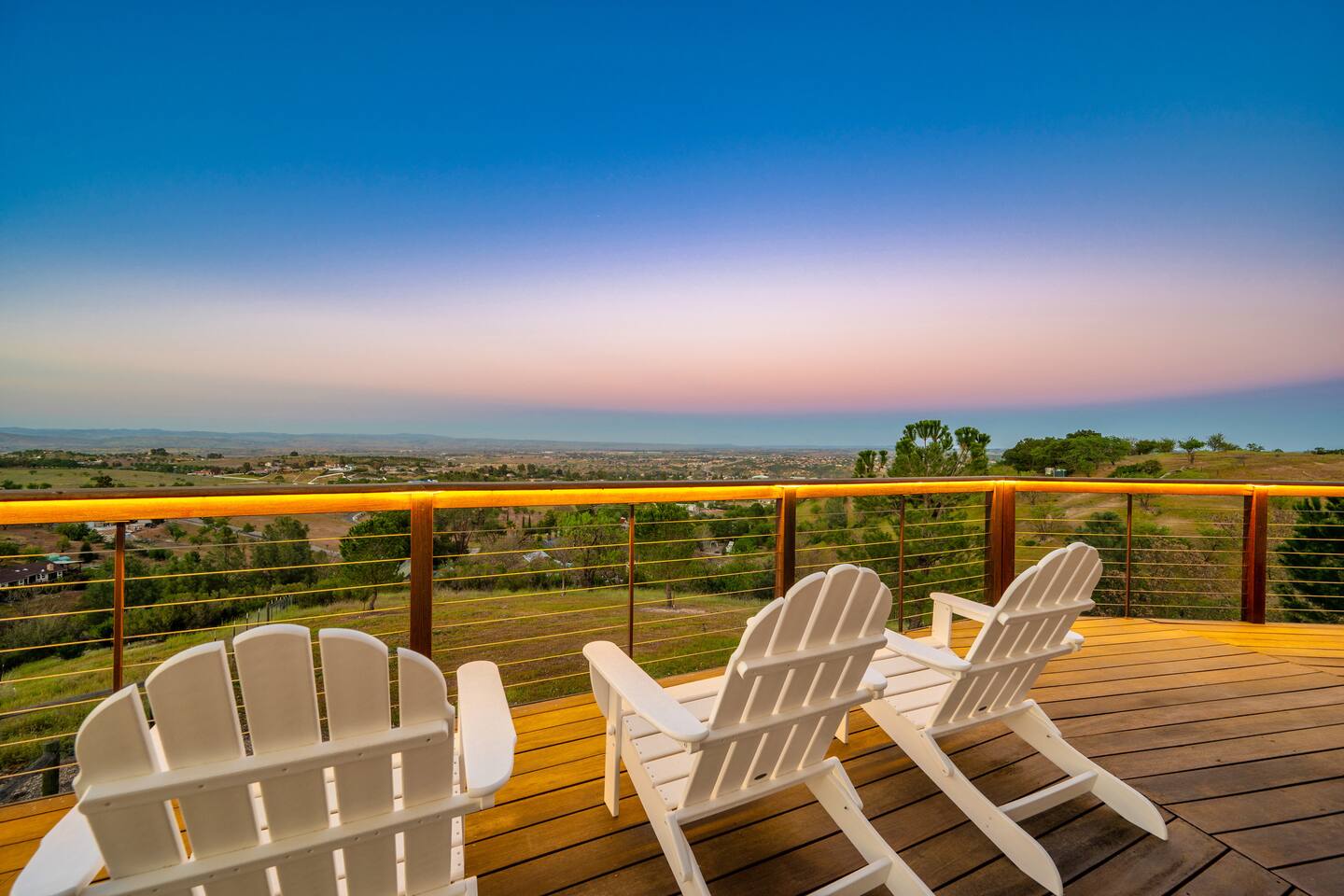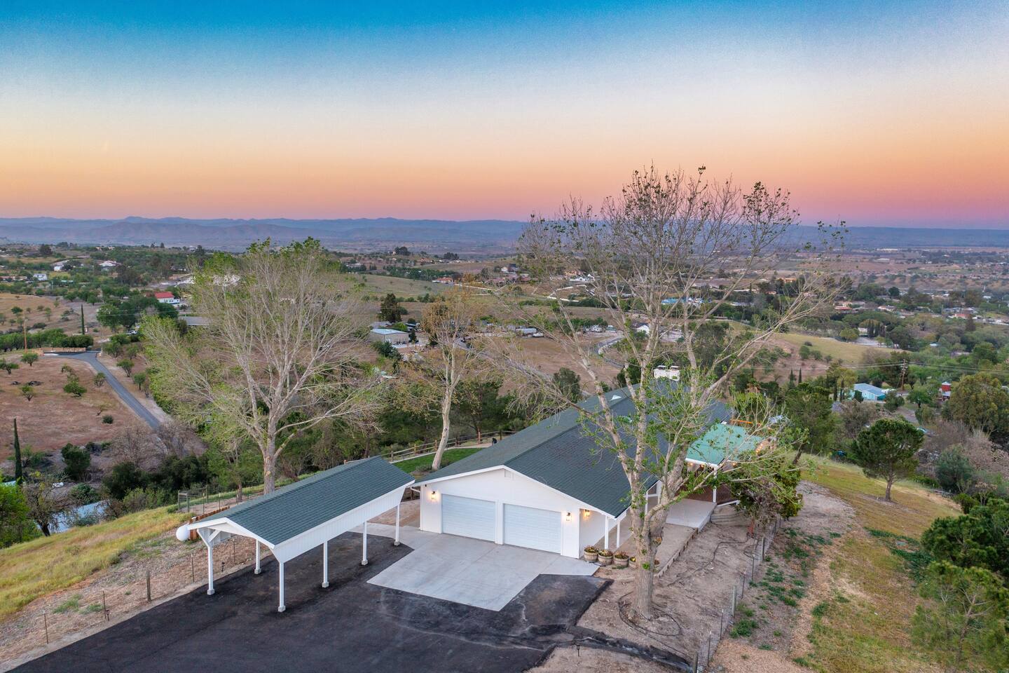 Centrally located among the best wineries in Paso Robles, you’re on top of the world at this 7-acre luxury 4BR/3BA ranch home. Soak in sweeping 180-degree views of vineyard vistas and twinkling city lights, all while being just minutes from downtown Paso Robles. Beautifully remodeled, this stunning vacation home features a chef’s kitchen, granite countertops, vaulted ceilings, rock fireplaces, a family room, desks in every room, high-speed internet, and a 40 Amp electric vehicle charger.